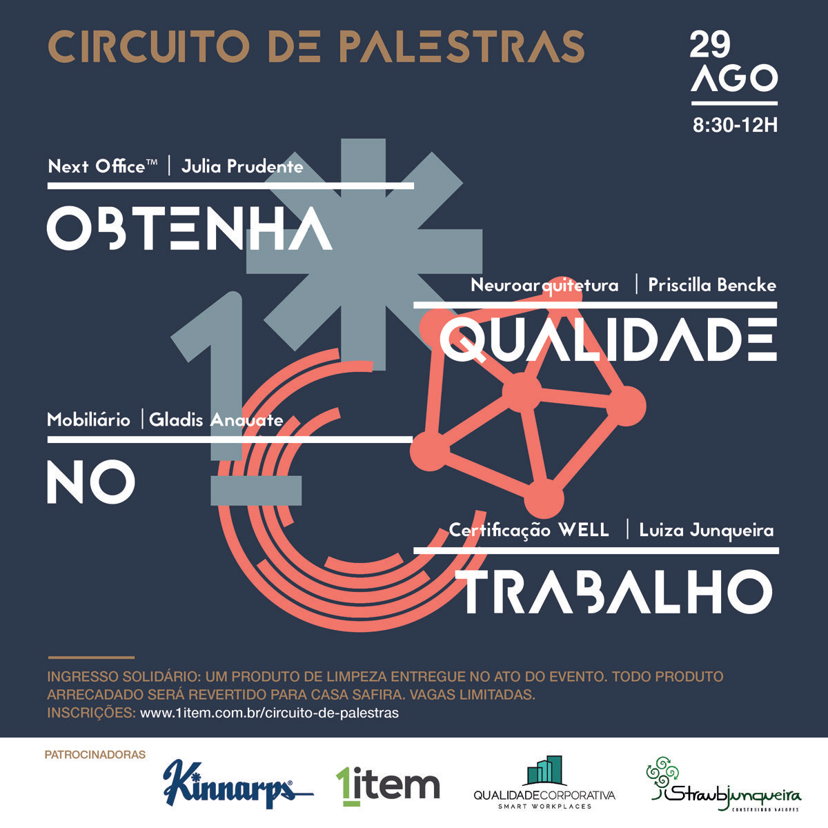 No dia 29/08, em parceria com a “Kinnarps”, “1 Item” e “Qualidade Corporativa”, estaremos em uma manhã de palestras e bate-papo sobre a “Qualidade do